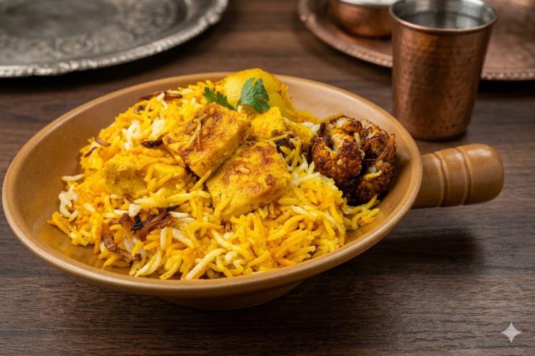 This Kolkata style veg biryani is made with Chunks of paneer cauliflower and potato and dum with exo...